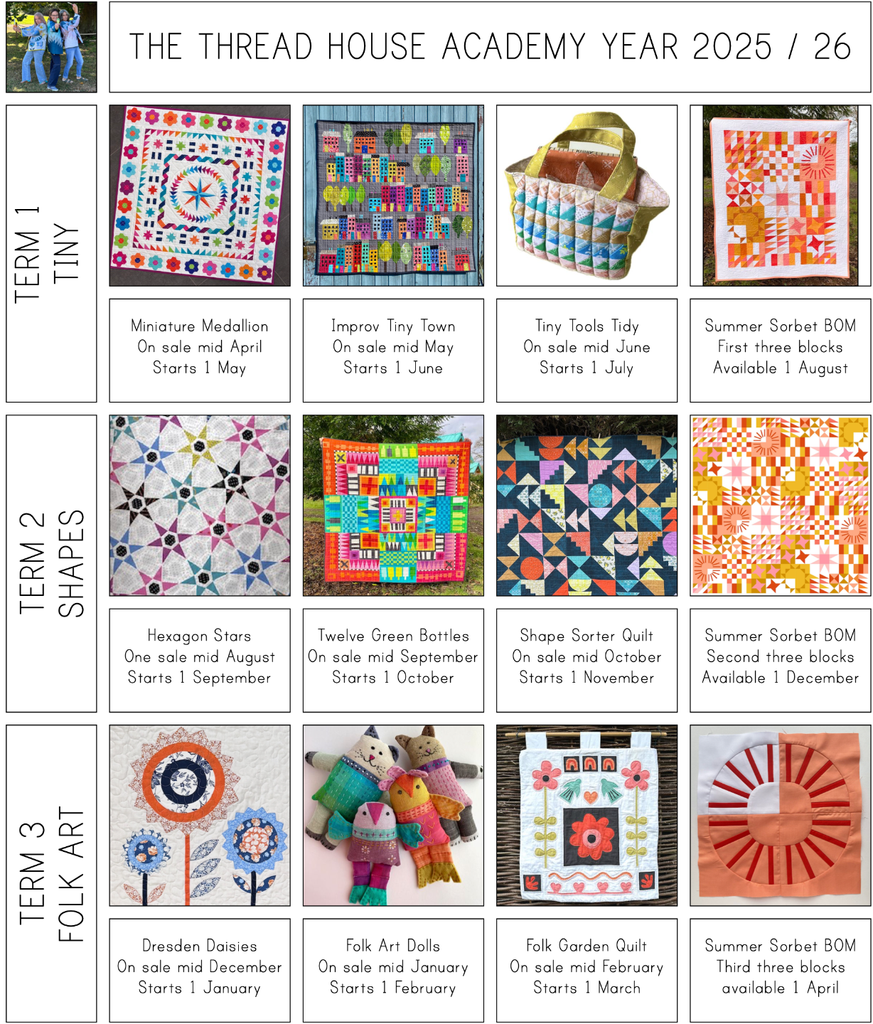 A whole year of weekly video workshops, masterclasses and zoom classes starting on 1 May 2025 with Jo, Karen and Lynne - includes full access to all of the taster weekend classes as well as our new BOM, Summer Sorbet.