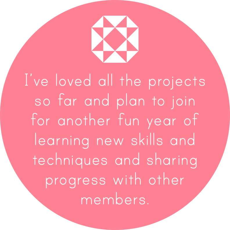 The Annual and Term Passes include a community space where we can share our work and offer enthusiasm and feedback to our fellow crafters, all safely away from social media. You can also use this platform to communicate with your tutors.
