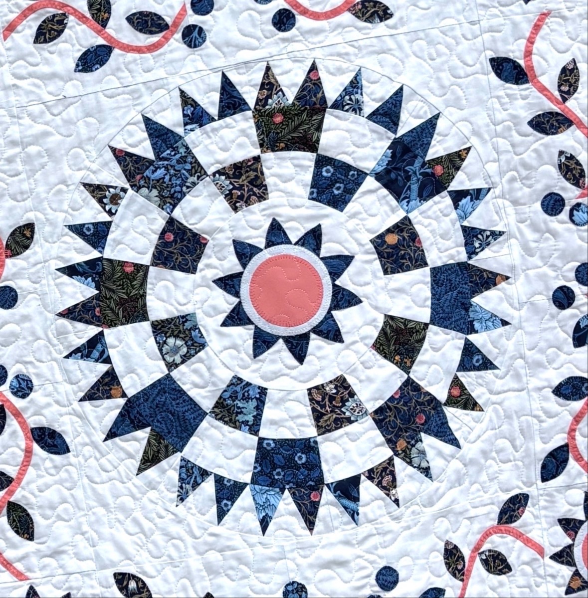 Karen will be looking at the technique of reverse appliqué where the background fabric is layered on top and a hole cut away, rather than placed underneath as for traditional appliqué.