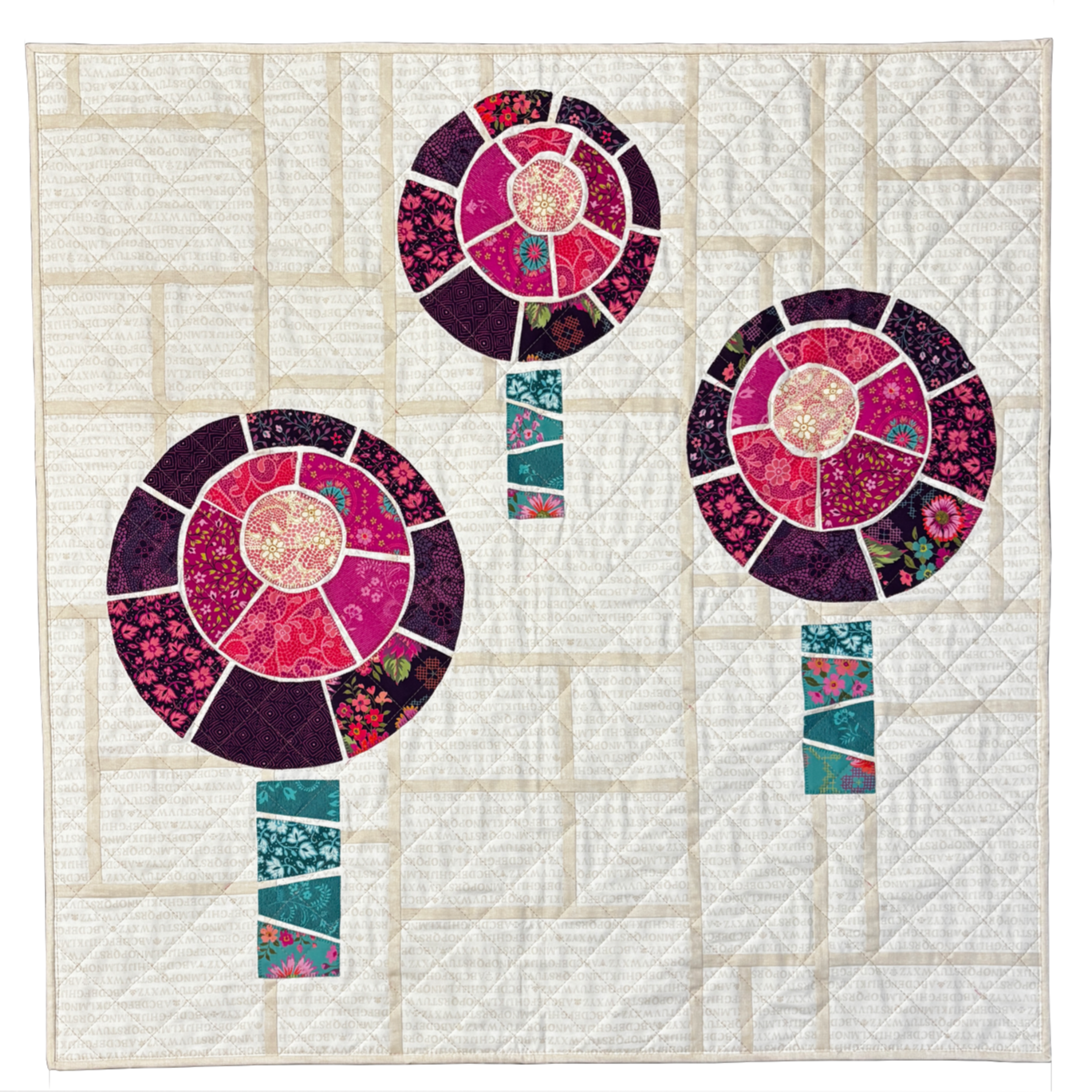 In the final week, we will carry out the same process for the tree trunks, arranging them on the background, removing papers, fusing to the background then stitching in place and you can then go on to quilt your quilt as desired.