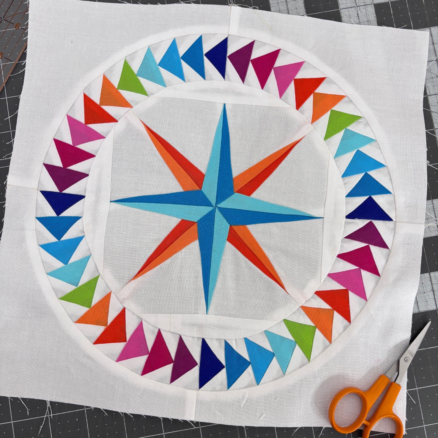 In week three we will be making the quarter square triangle units to make the little stars. We will also be strip piecing to make the equal sign blocks for the third border.