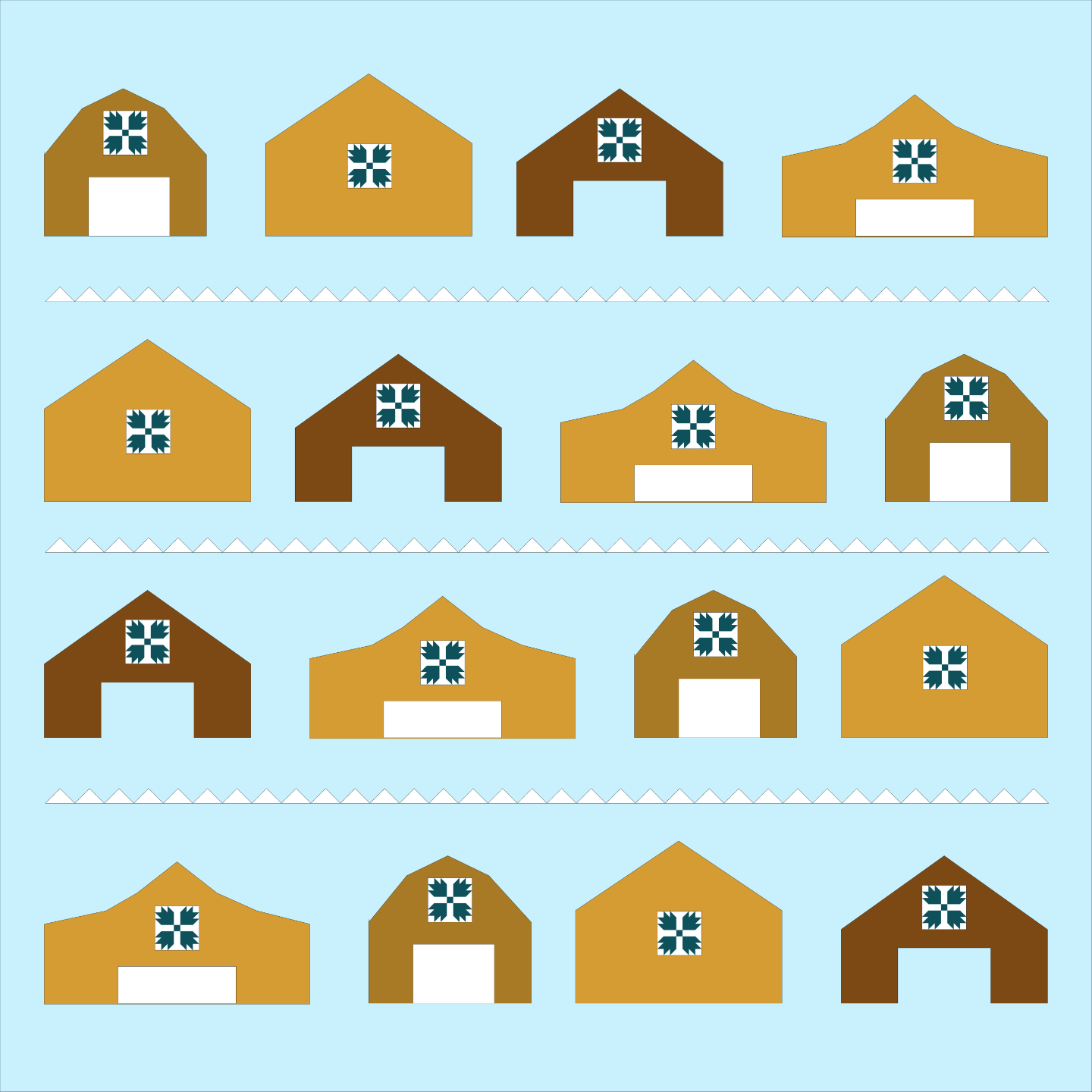 Karen has designed this fun quilt taking her influence from barn quilts to create nostalgic barn blocks with your own screen printed quilt blocks.
